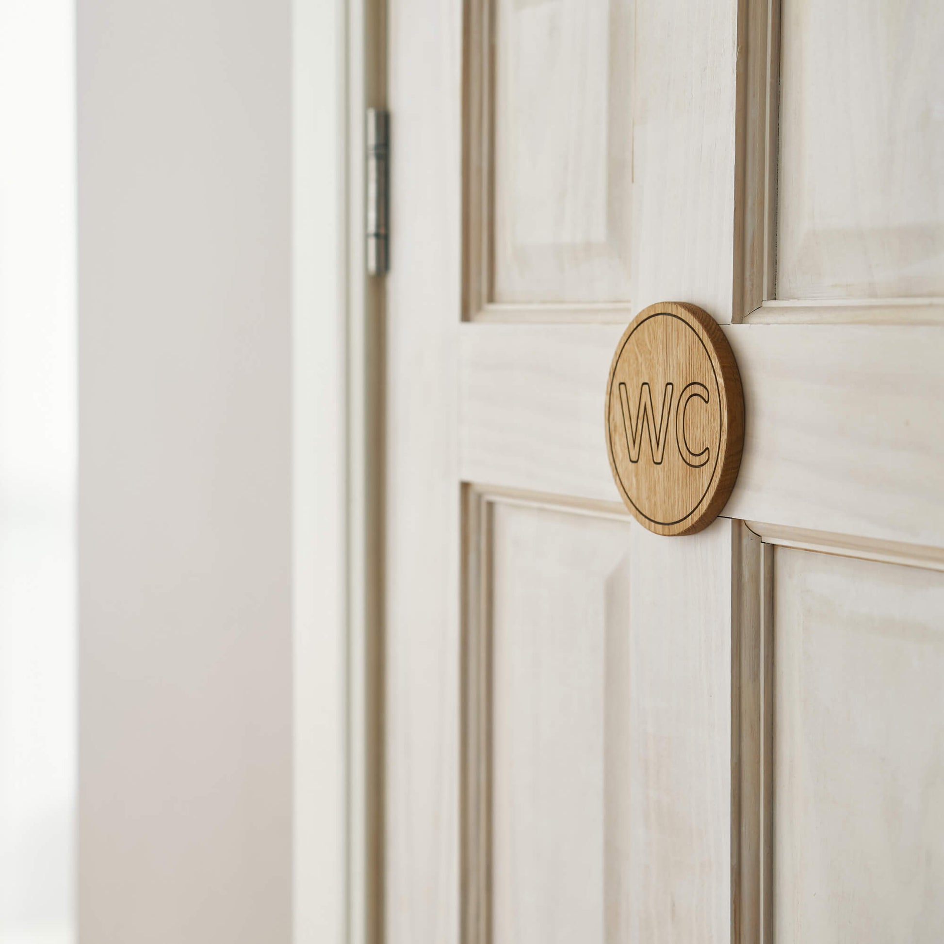 Elegant wooden WC sign. Crafted from solid oak, giving the product a natural and refined appearance. This sign is a great addition to your home and is also suitable for restaurants, bars, or office spaces.